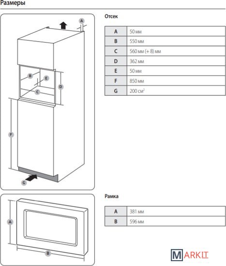 Размеры ниши для встраивания