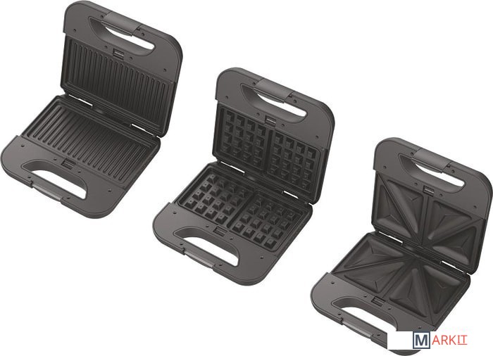 | Рабочая поверхность | гриль-пластина, форма для 2 ломтиков хлеба, вафельница |