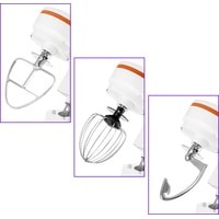 - моторный блок;- чаша миксера;- крышка чаши миксера;- венчик для сбивания;- насадка для смешивания;- крюк;- руководство по эксплуатации. |